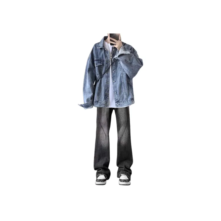 Двухкомпонентный комплект (Светло-синяя куртка + Черные джинсовые штаны)