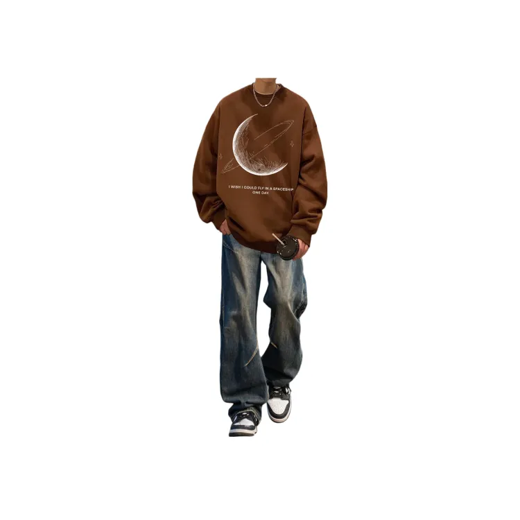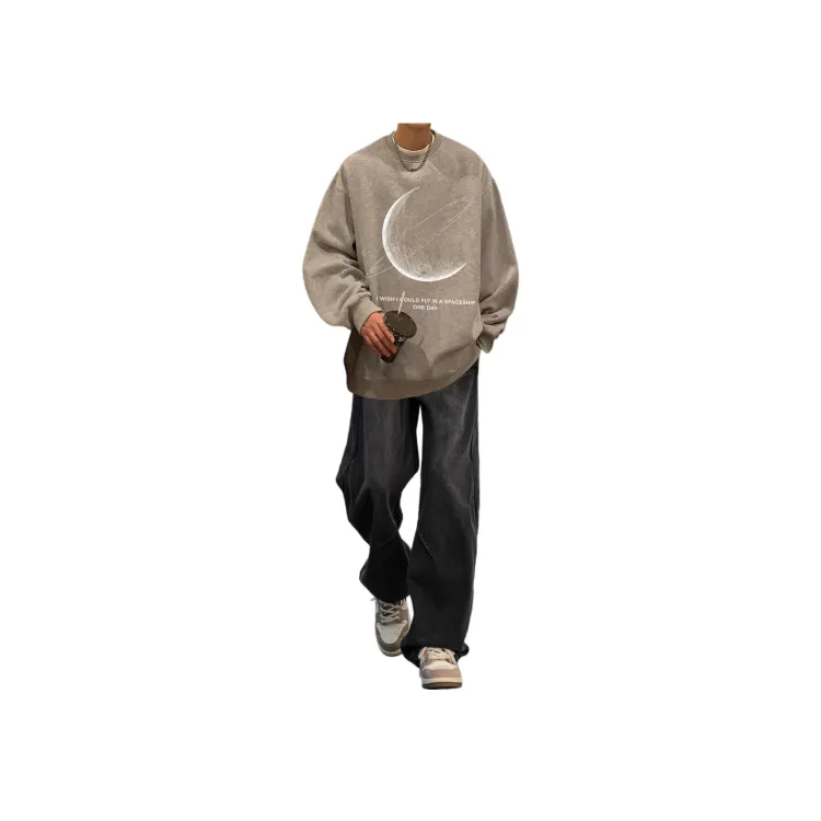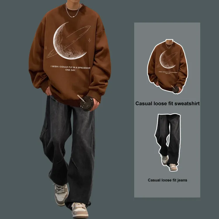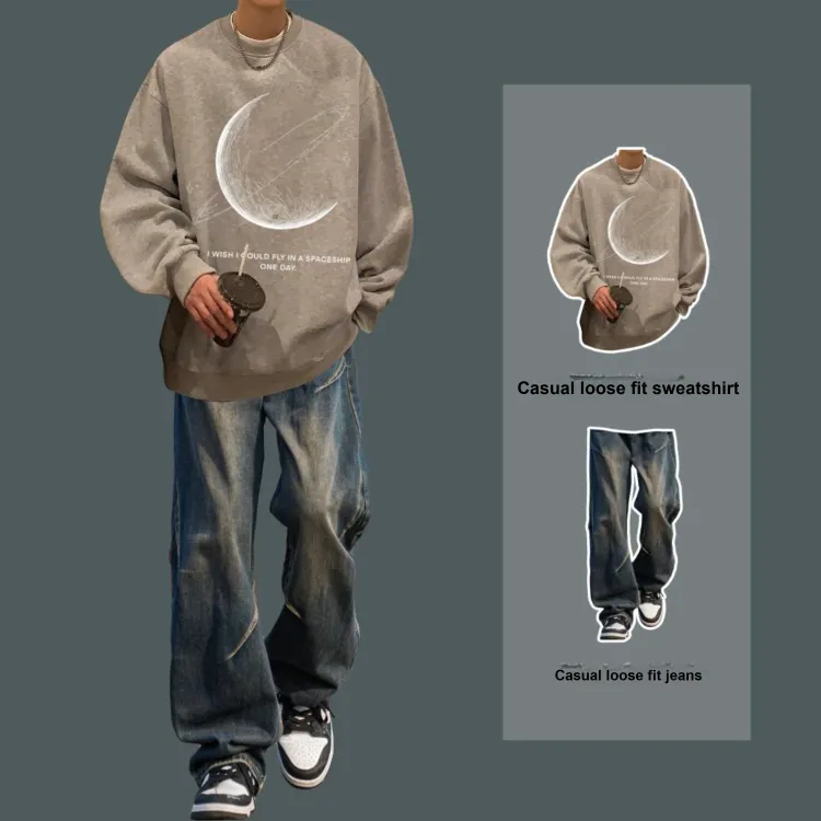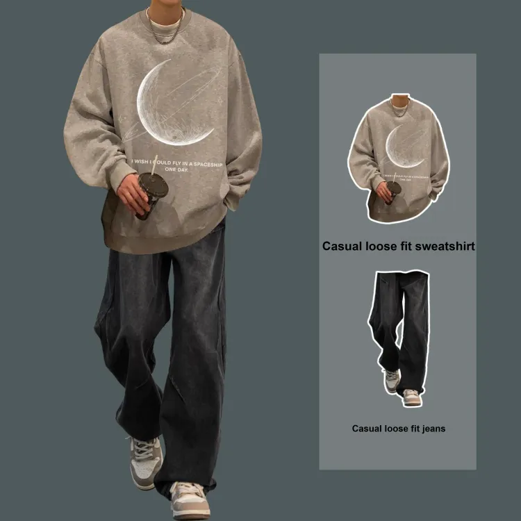 Двухкомпонентный комплект (Коричневый серый свитшот + черные джинсовые штаны)