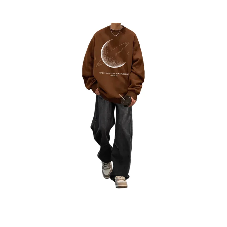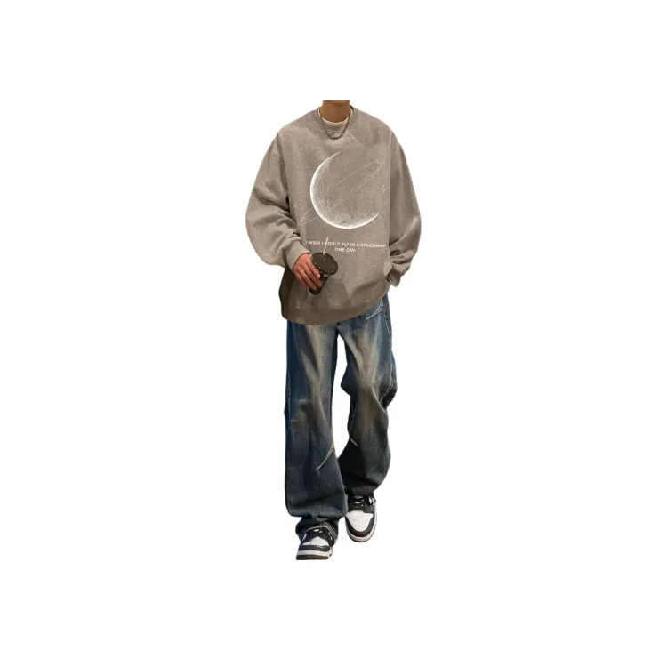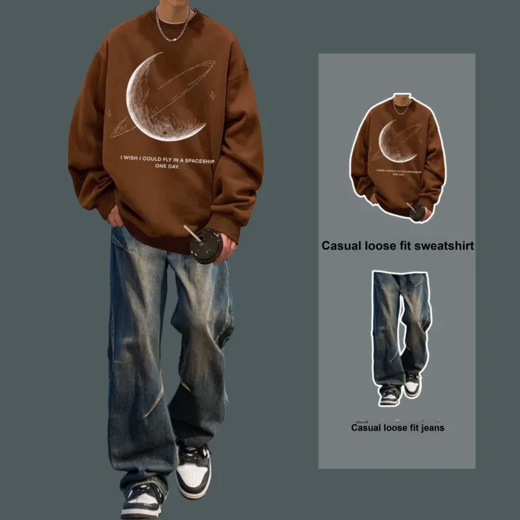 Двухкомпонентный комплект (Коричневый серый худи + винтажные синие джинсы)