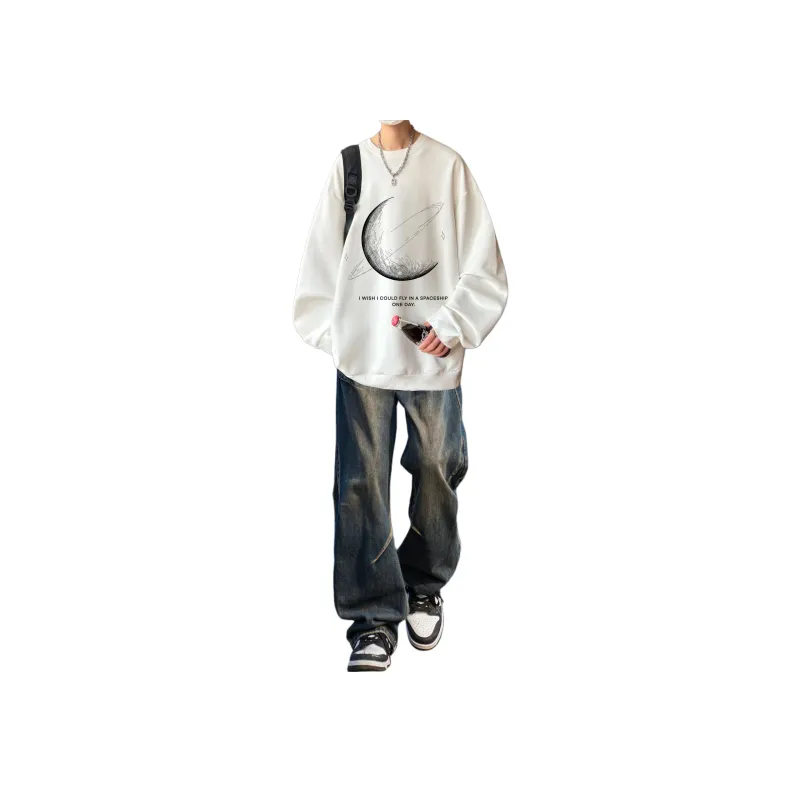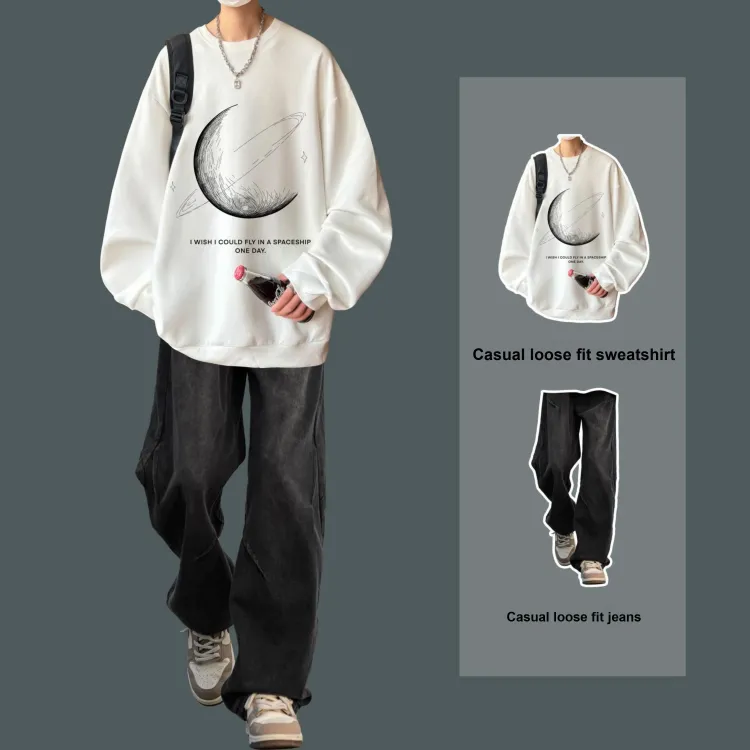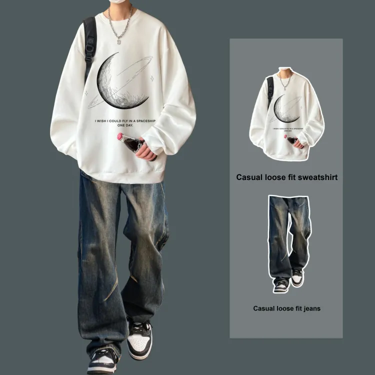 Комплект:Двухкомпонентный комплект (Белый худи + Винтажные синие джинсы)