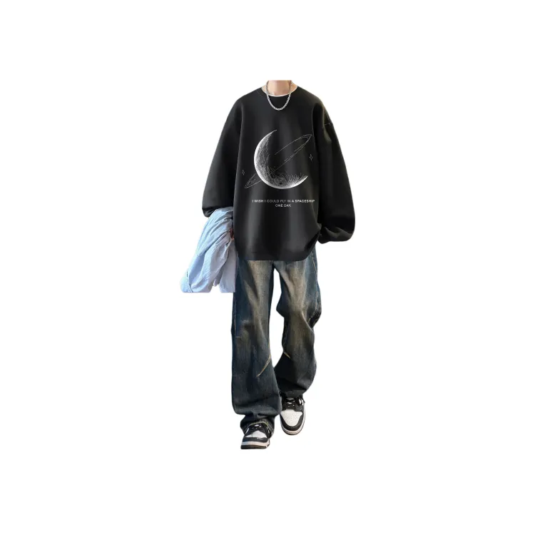 Двухкомпонентный комплект (Черный свитшот + Винтажные синие джинсы)