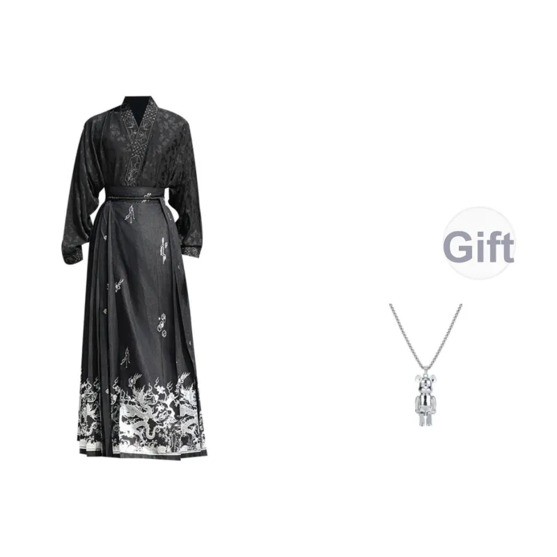 Цвет:Черный топ + китайская юбка с узором "конское лицо" (Китайская юбка с узором "конское лицо" является типом традиционных китайских брюк, часто носимых с топом для официальных мероприятий)