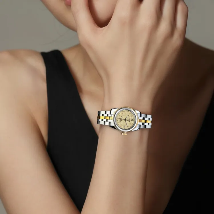 Tudor Jun Jue серия Автоматические механические часы Женские 26 мм Золотой циферблат Стальной ремешок