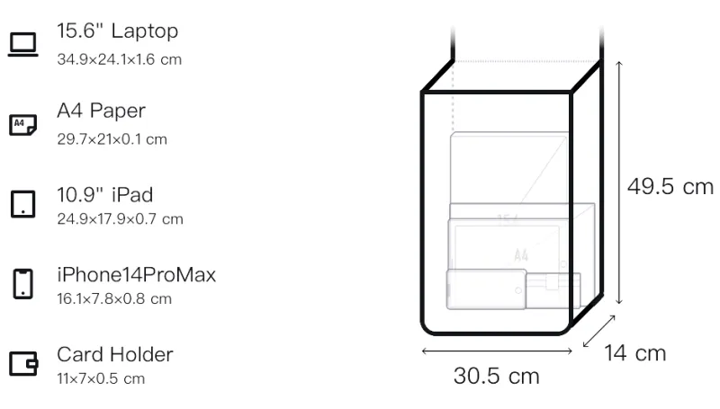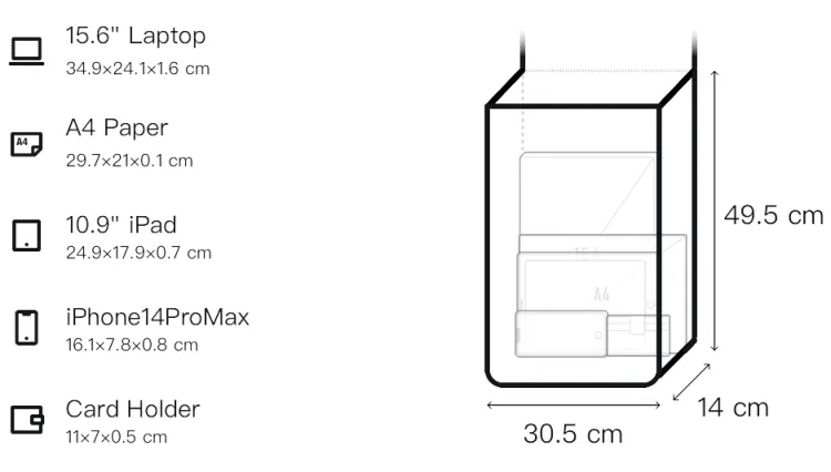 Длина 30,5 см * Ширина 14 см * Высота 49,5 см