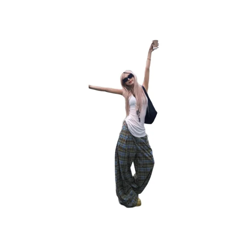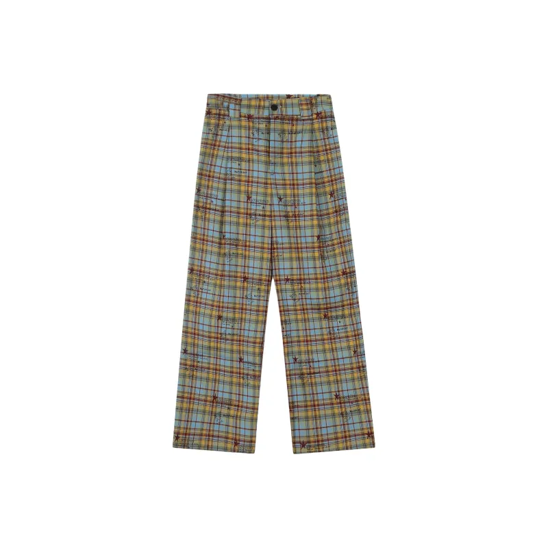 TUOFEI Синий/желтый Клетчатый Унисекс Повседневные брюки