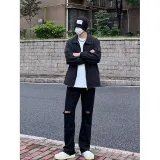 TUOFEI Черные Унисекс Джинсы