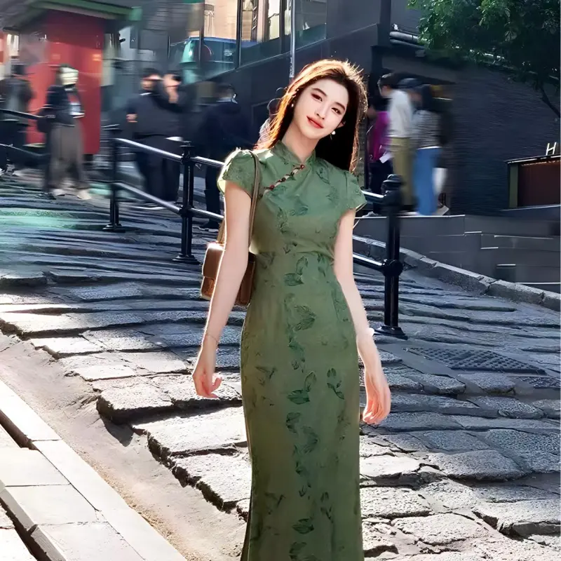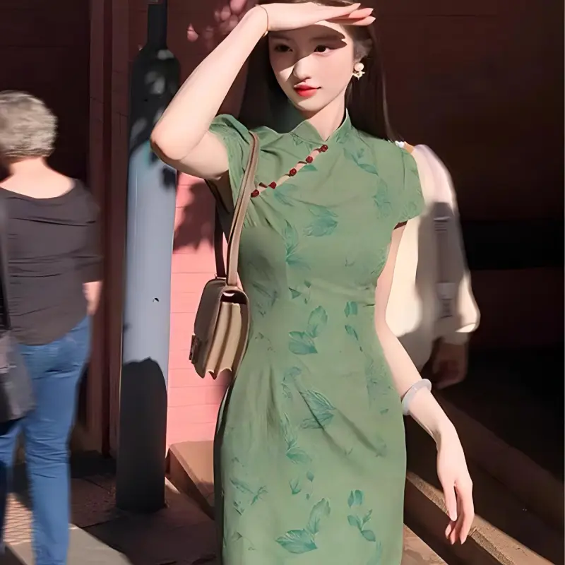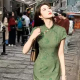 TURN UP Короткий рукав Платье Женское Зеленое