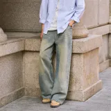 TUXIANSEN Джинсы Унисекс Вымытый Деним