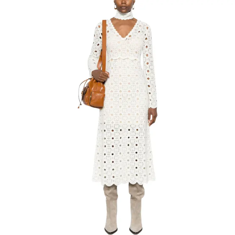 TWINSET Milano FW24 Длинное платье с длинными рукавами цвет слоновая кость женское