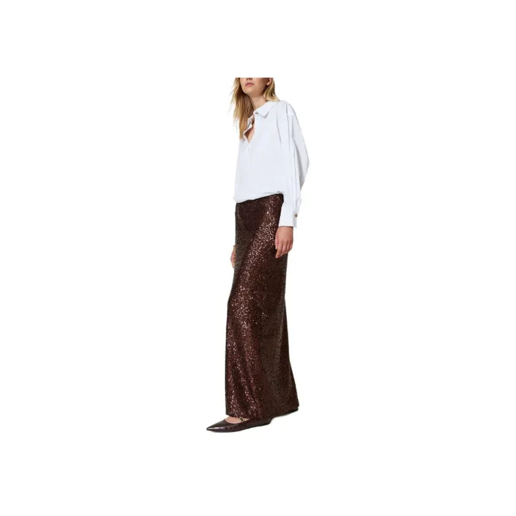 TWINSET Milano SS24 Повседневный Длинный Юбка Женские Chocolates Коричневый