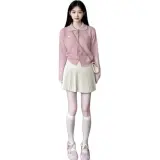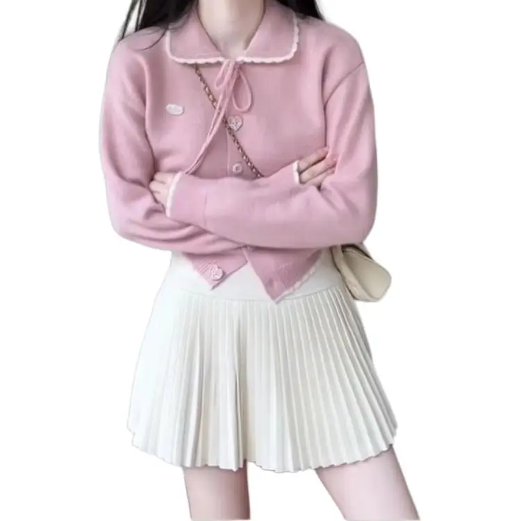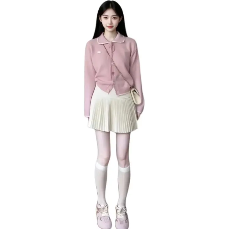 Розовый свитер и юбка