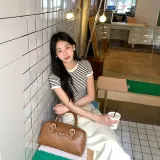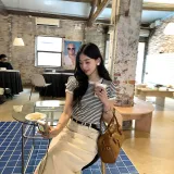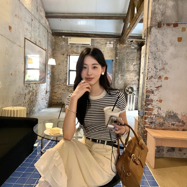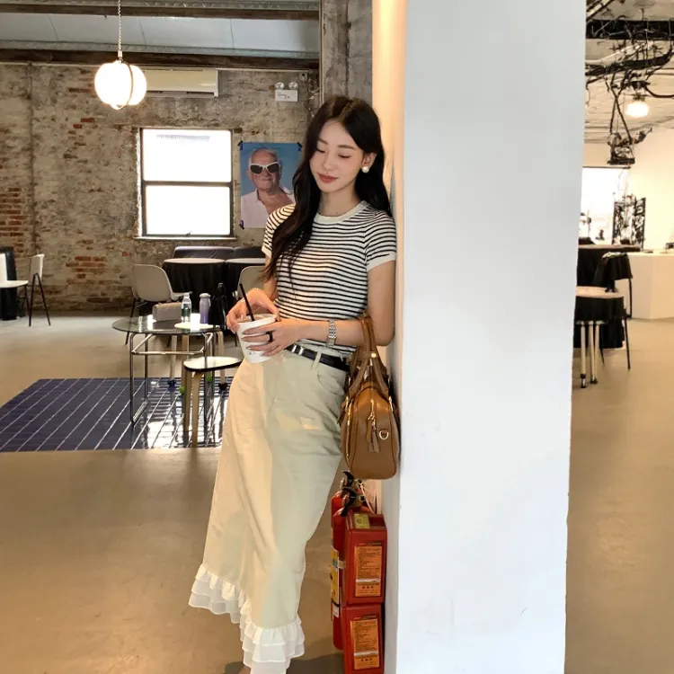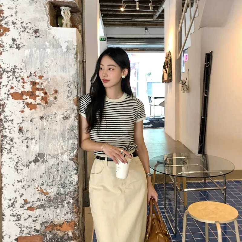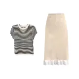 Полосатый топ + абрикосовая юбка женские комплекты с юбкой