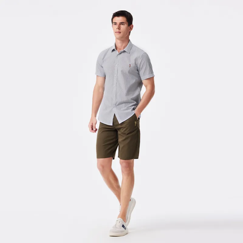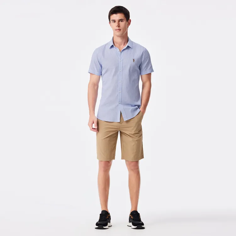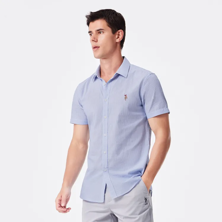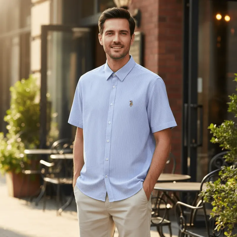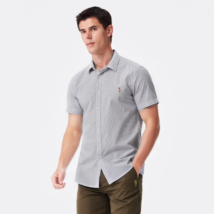 Рубашка для мужчин от U.S. POLO ASSN. выполнена в концепции минималистичного дизайна. Она изготовлена из 100% хлопка, что обеспечивает комфорт и мягкость при ношении. Благодаря дышащим свойствам материала, рубашка эффективно сохраняет тело сухим, обеспечивая комфорт даже в жаркую погоду. Модель с отложным воротником добавляет элегантности и аккуратности. Классический полосатый принт делает дизайн стильным и подчеркивает мужскую харизму и вкус. Эта рубашка — отличный выбор как для повседневной носки, так и для неформальных мероприятий.