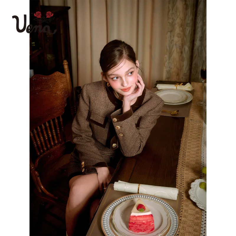 UENA Коричневое пальто в наличии Женское короткое пальто