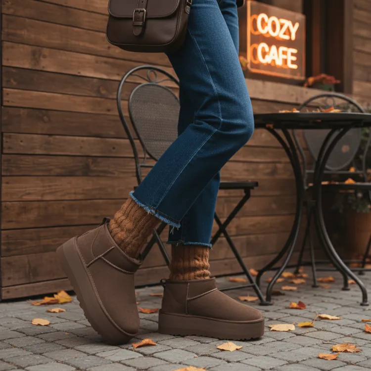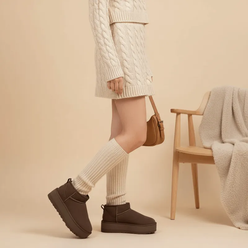Дизайн с высотой до щиколотки сочетает в себе стиль и практичность, подчеркивая линию ног и легко сочетаясь с различными стилями одежды. Шоколадный цвет придает обуви элегантность и современный вид, делая ее идеальным выбором для зимнего гардероба. Будь то прогулки по снегу или повседневная носка, ботинки UGG Classic Ultra Mini Platform удовлетворяют потребности женщин в комфорте и стиле.