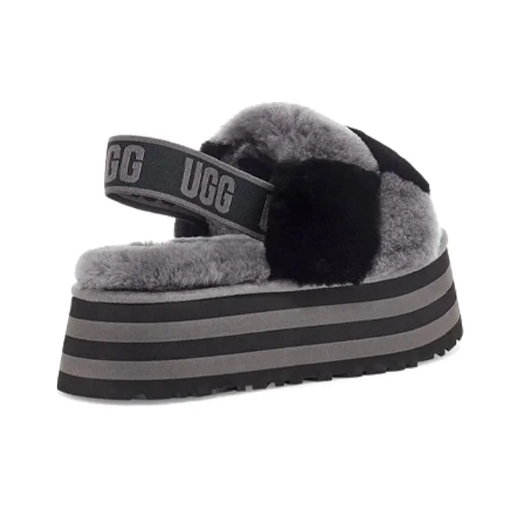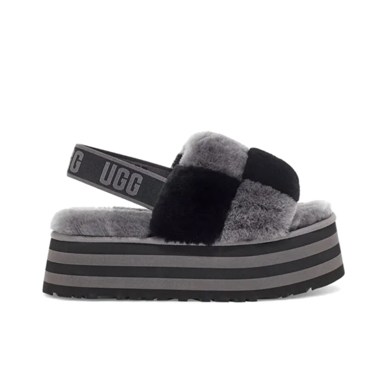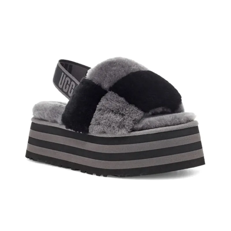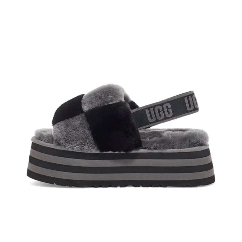 UGG DISCO Checker Slide Fashion Sandals Women's Black Gray UGG DISCO Checker Slide Модные сандалии женские черные серые