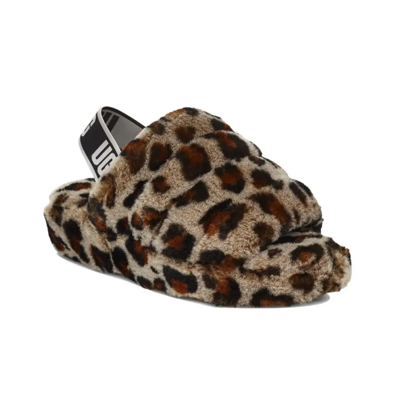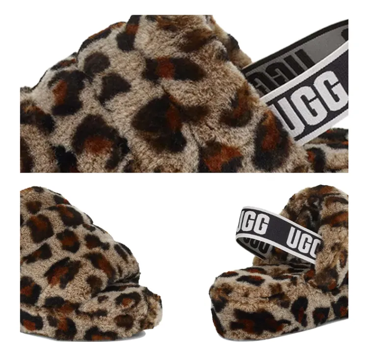 UGG FLUFF YEAH Леопард Повседневные Тапочки Женские с Леопардовым Принтом