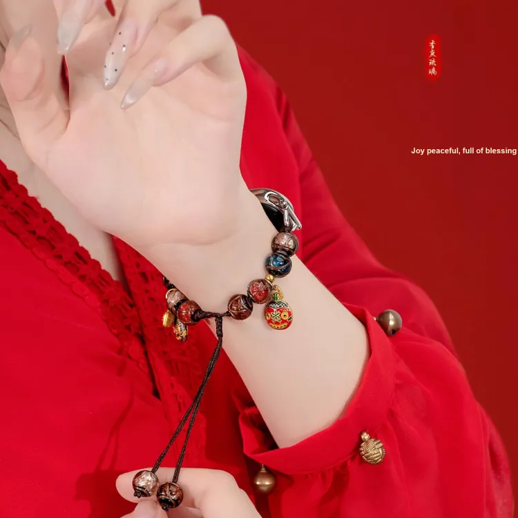 Браслет с бусинами из стекла, пепельный, с ремешком