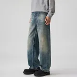 UKTK Винтажные синие мужские джинсы