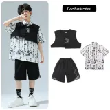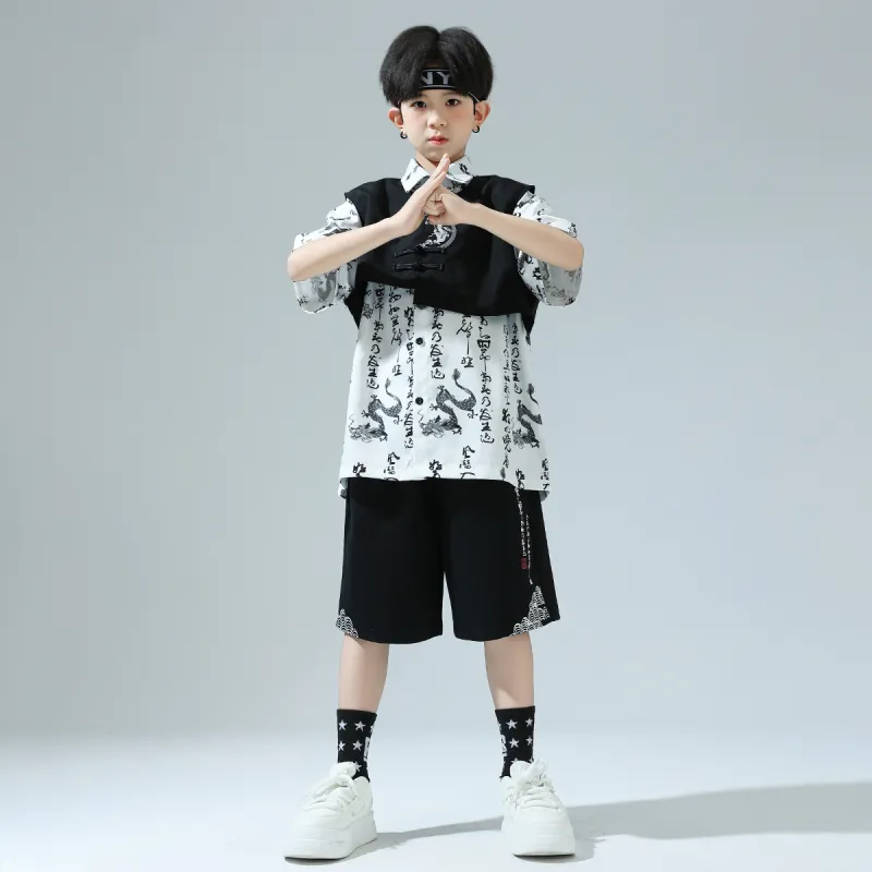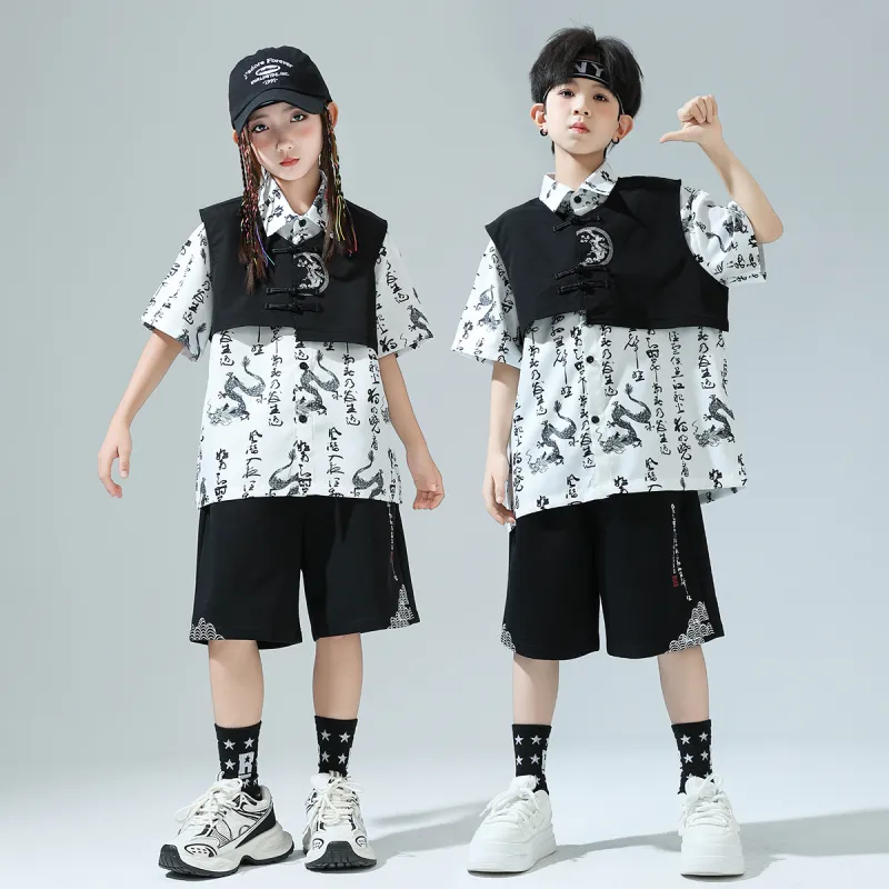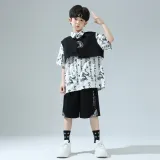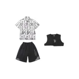 ULOVAZN Повседневная спортивная одежда 359 Белая укороченная рубашка с короткими рукавами + 360 Черные шорты + 361 Черный жилет для детей