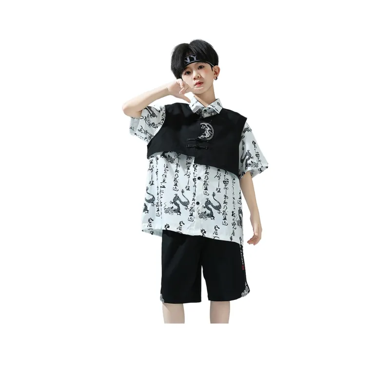 Цвет:359 Белая рубашка с короткими рукавами + 360 Черные шорты + 361 Черный жилет