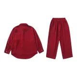 662 Бордовый Длинный рукав Топ + 663 Бордовые Штаны (Включает Белую Майку)