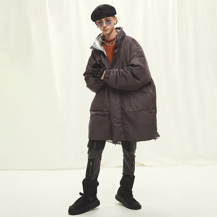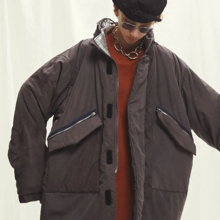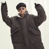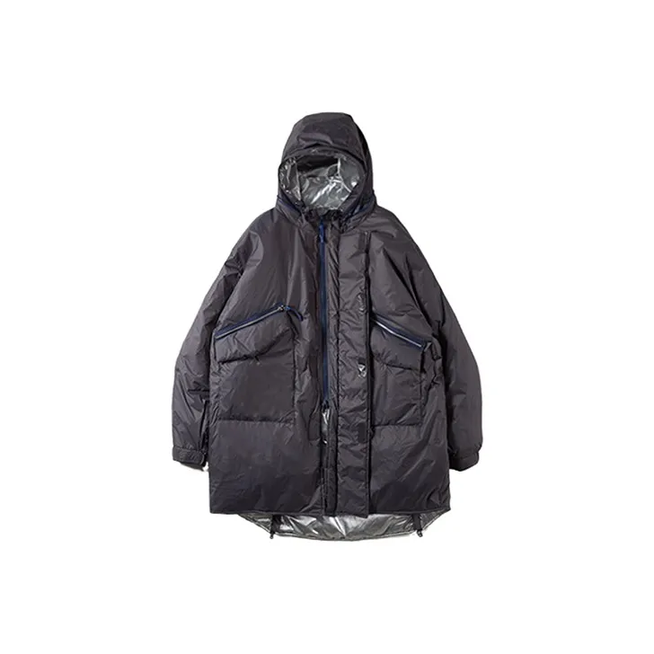 Umamiism С капюшоном свободный крой длина пуховая куртка унисекс темно-серый