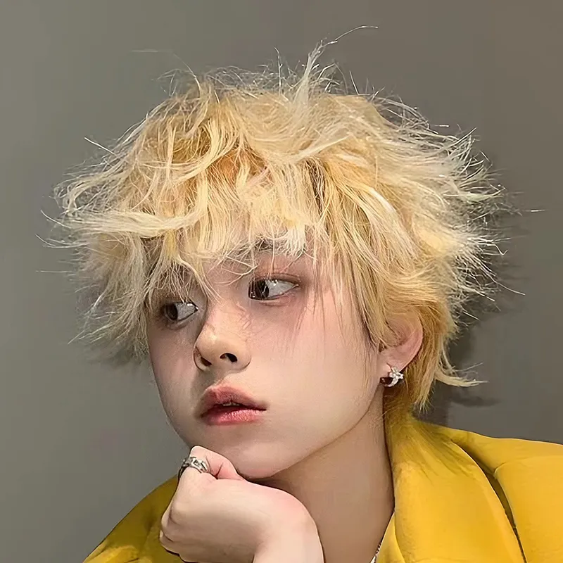 UMIFFA Золотой Короткий Кудрявый Мужская Перука Стильный Латинский Кудрявый Высокотемпературная Пряжа Короткие Кудрявые Волосы