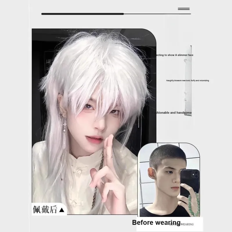 UMIFFA Волк Ласточкин хвост Mullet Голова Перука Набор Белый