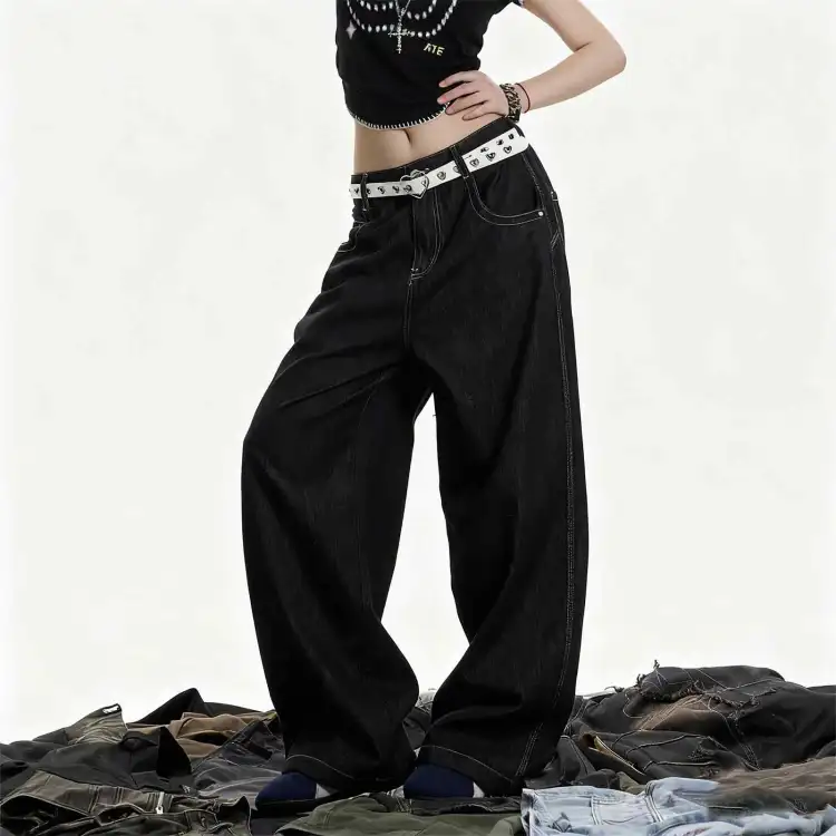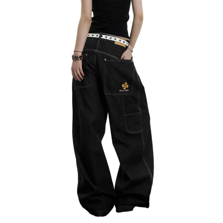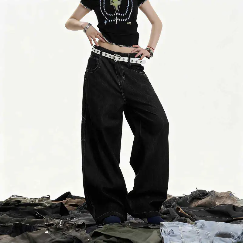 UNA RETA Черные Унисекс Джинсы