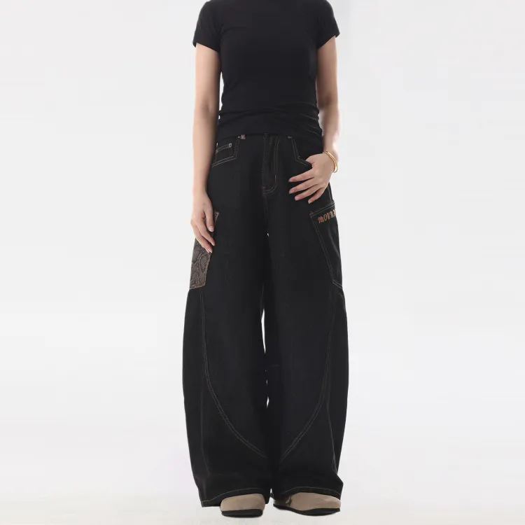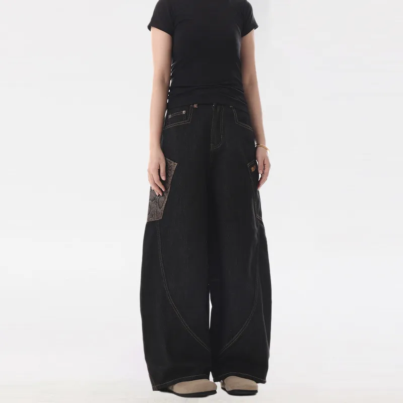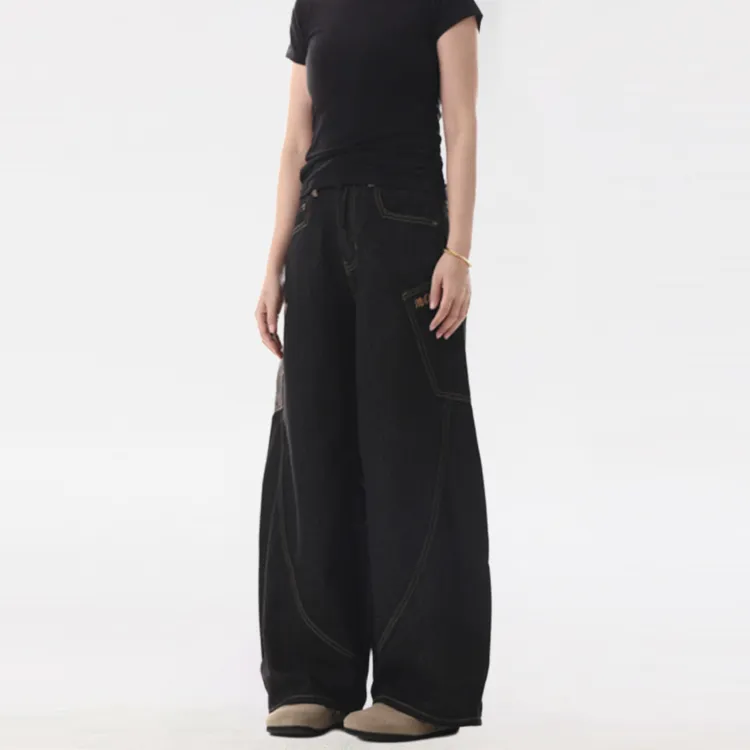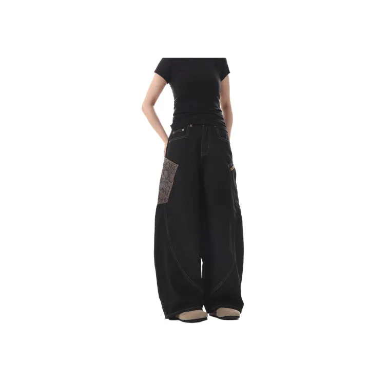 UNA RETA Матовый черный Унисекс Джинсы