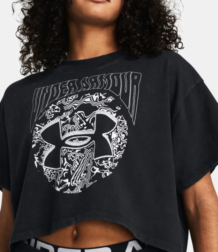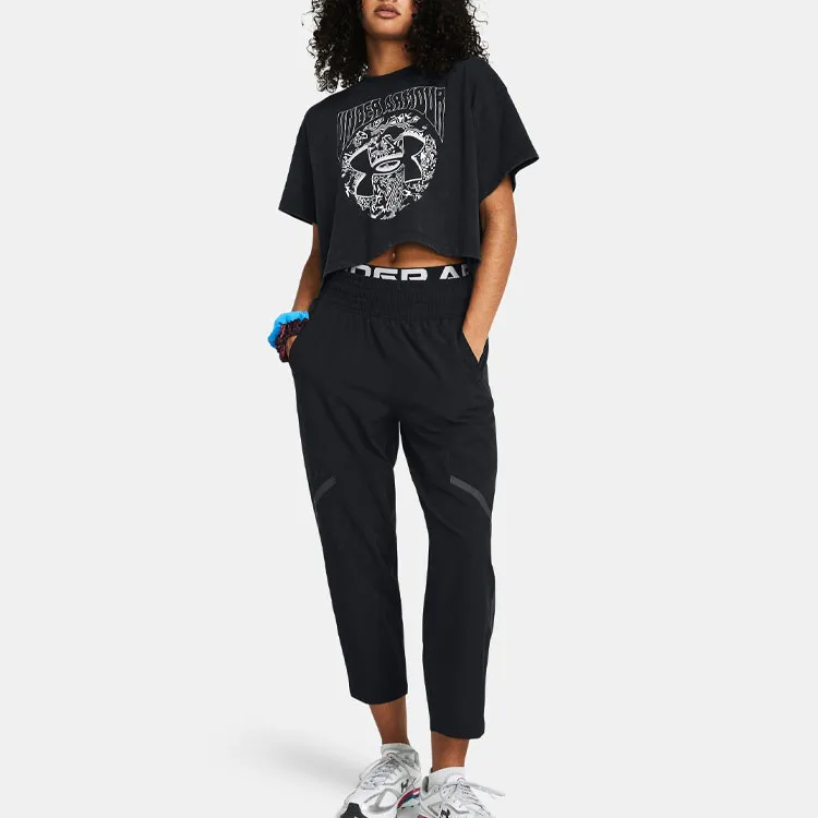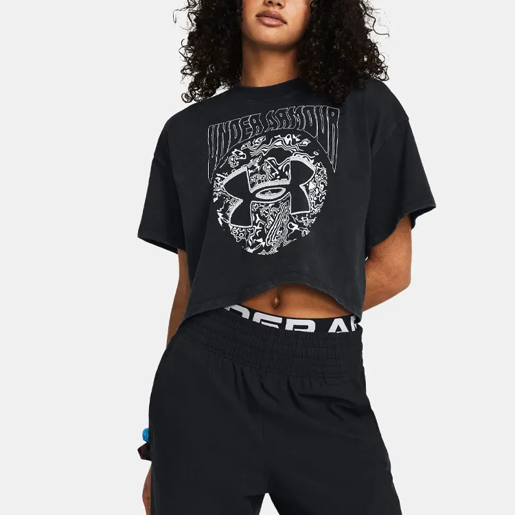 Under Armour Рукав с оборванным плечом T-рубашка Женская Черная