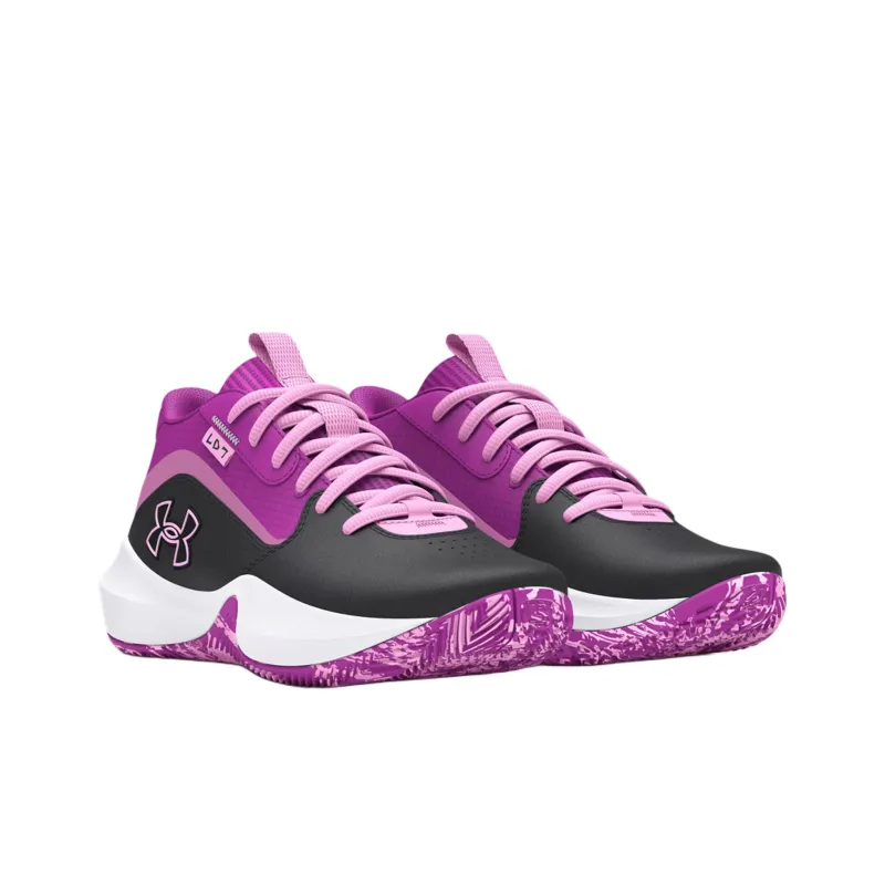 Under Armour Lockdown 7 Устойчивый к истиранию MID Топ Детские Баскетбольные Кроссовки Черный Фиолетовый Подростки