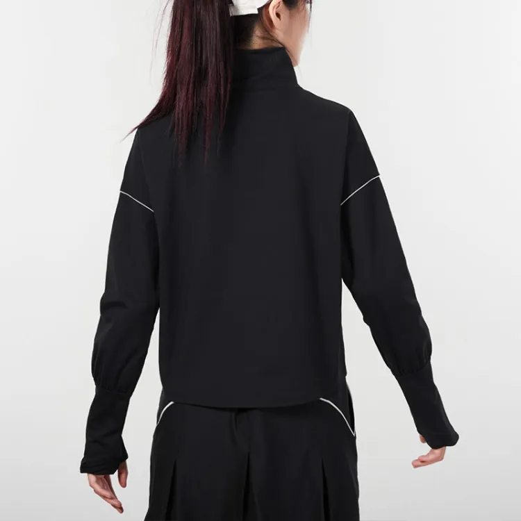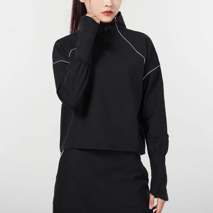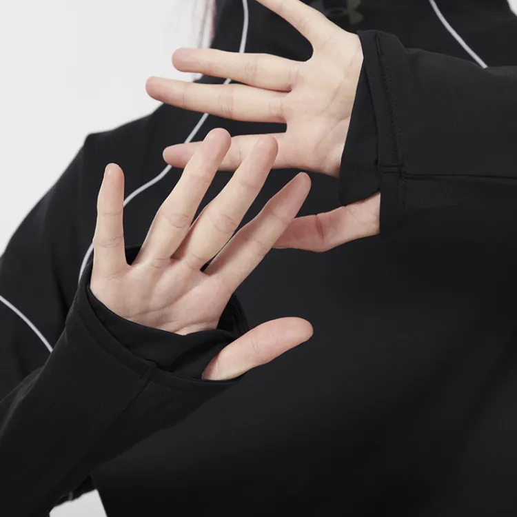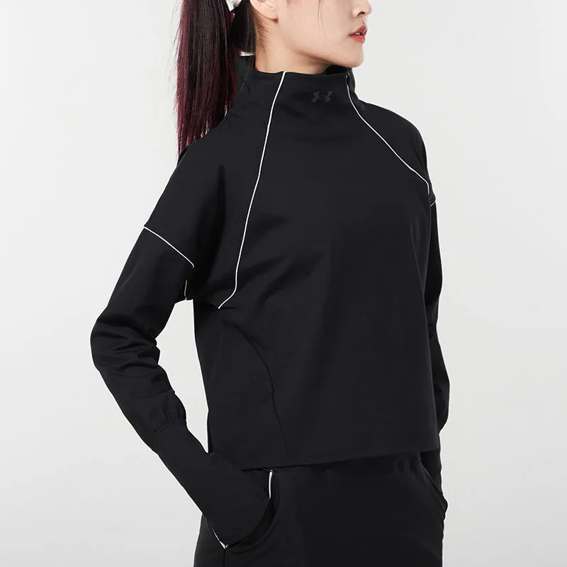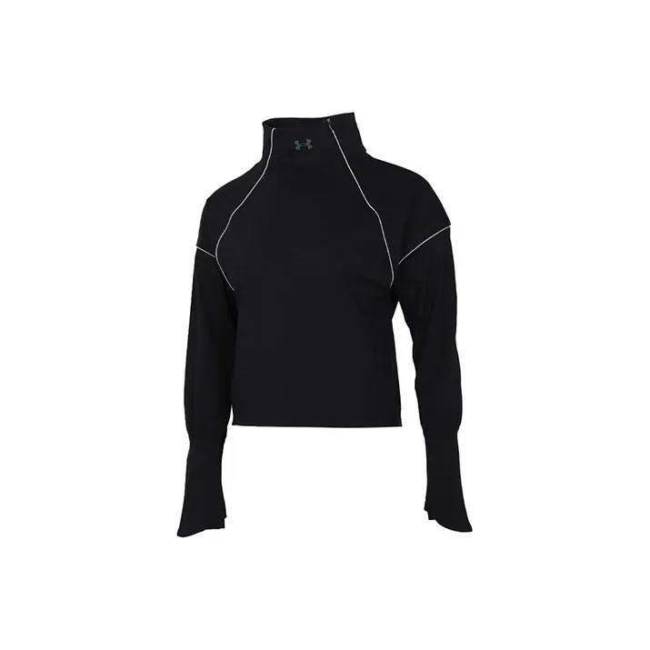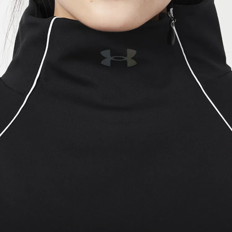 Under Armour Воротник-стойка Облегающий Прямой крой Длинный рукав Т-рубашка Женская Черная