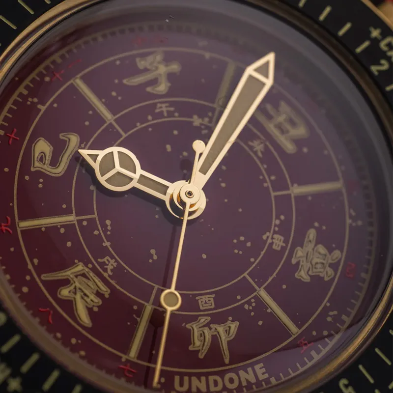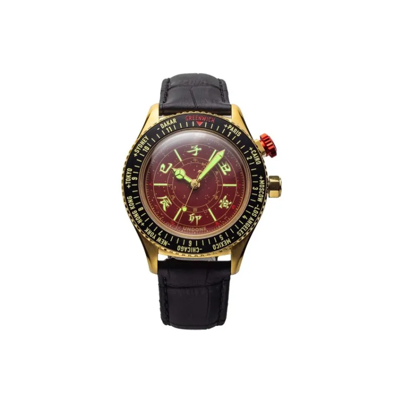 UNDONE Автоматический Механический Механизм Естественная Кожа Ремешок Часы Мужские Красный Циферблат Часов