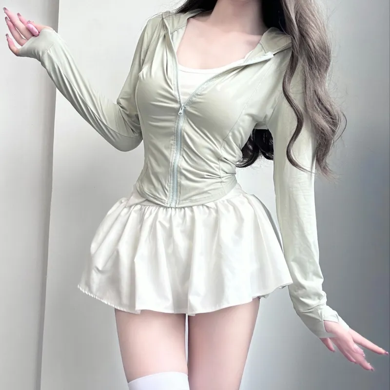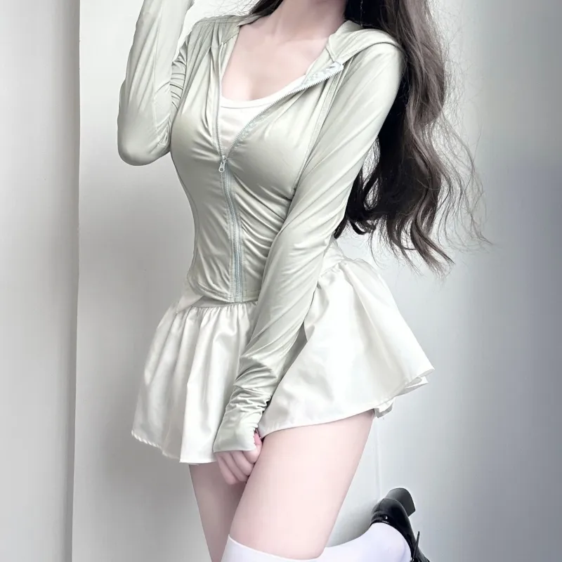 Цвет:Set (Green Coat + White Skirt) Комплект (Зеленое пальто + Белая юбка)