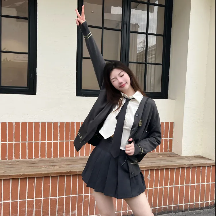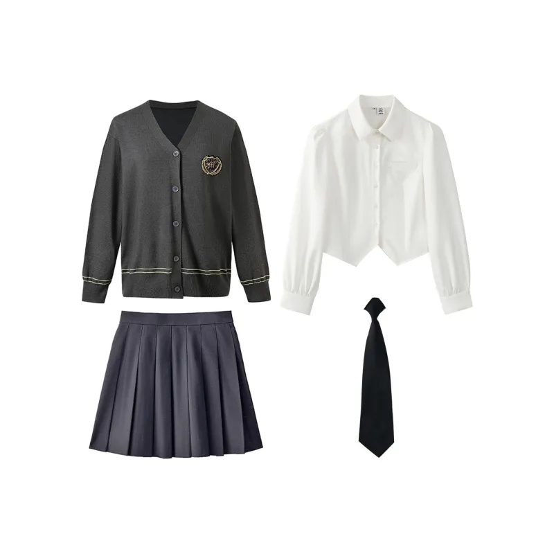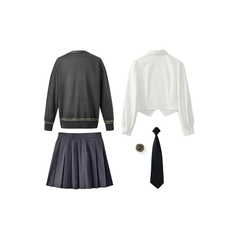 Цвет:Угольный серый комплект (кардиган + рубашка + юбка + аксессуары + галстук)