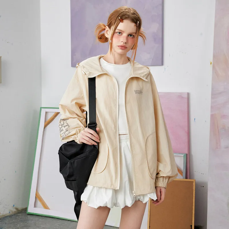 UNIFREE X AISILEXIAOTU LIANMINGKUAN Куртки и пальто женские бежево-желтые