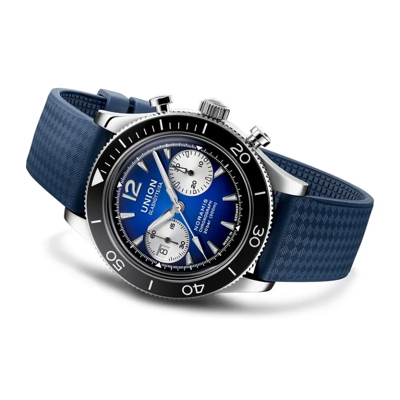 UNION GLASHUTTE SA Автоматический Механический Механизм Мужские Часы Часы 43 мм Синий Циферблат Корпус из Нержавеющей Стали Резиновый Ремешок