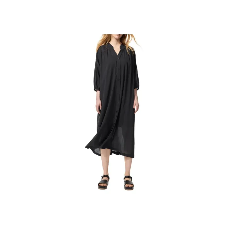 UNIQLO Длинное платье с длинными рукавами женское черное