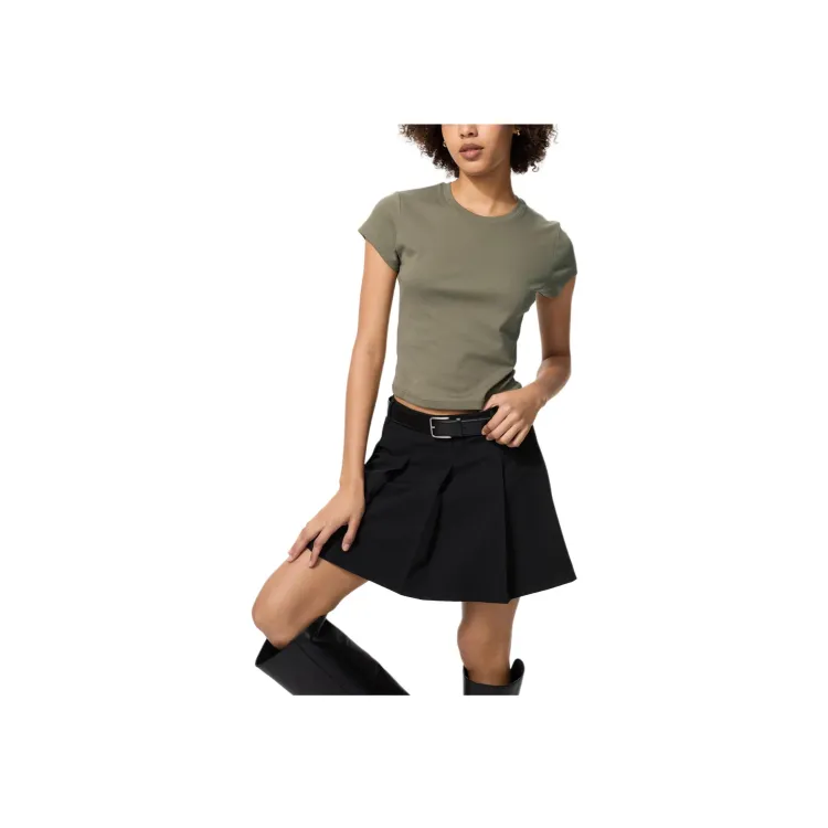 UNIQLO T-рубашка Женская Оливково-зеленая
