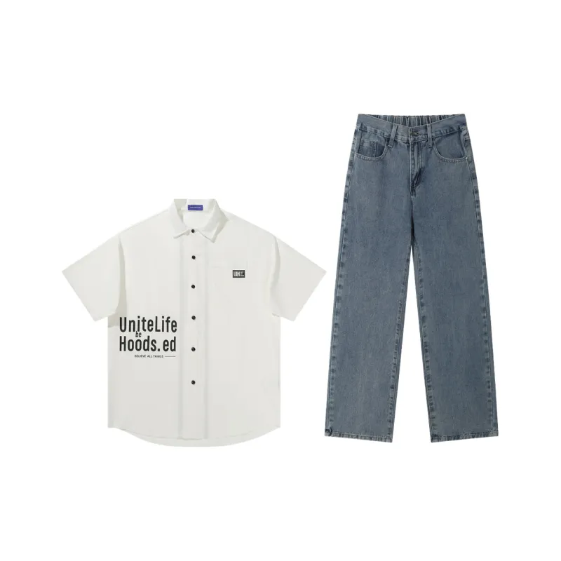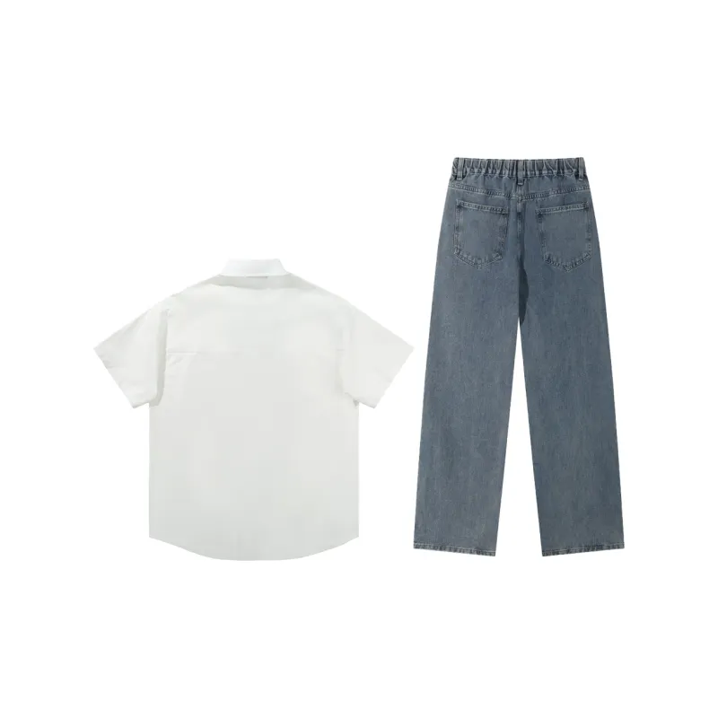 Комплект:Белый топ + средне-синие штаны