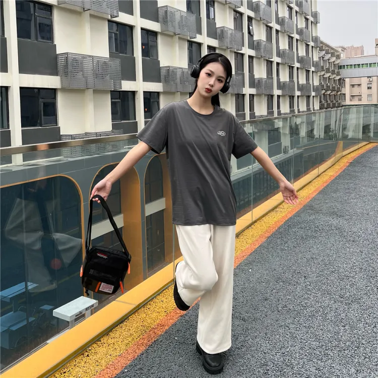Серый футболка + черные штаны