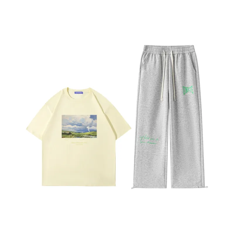 Комплект:Абрикосовый топ + серые штаны