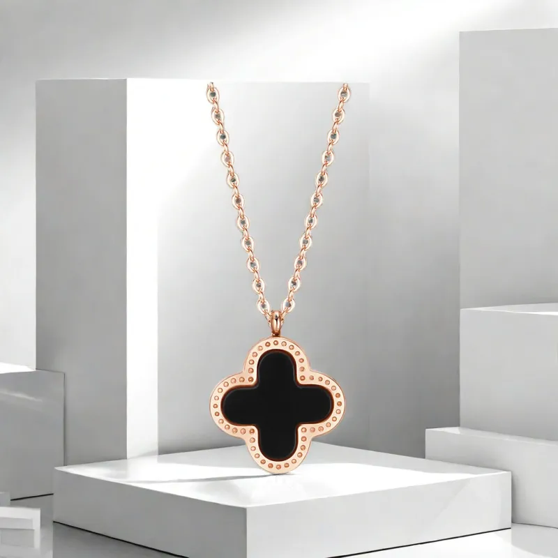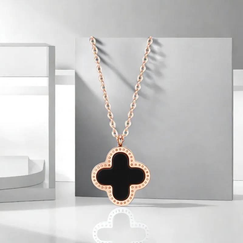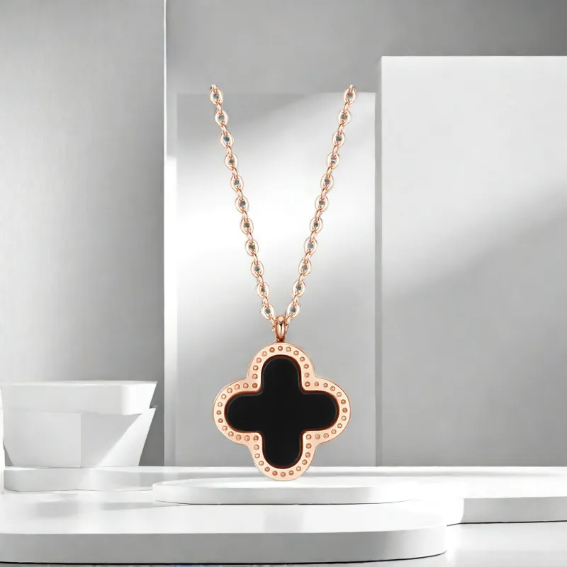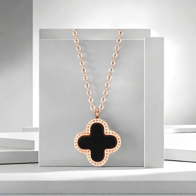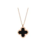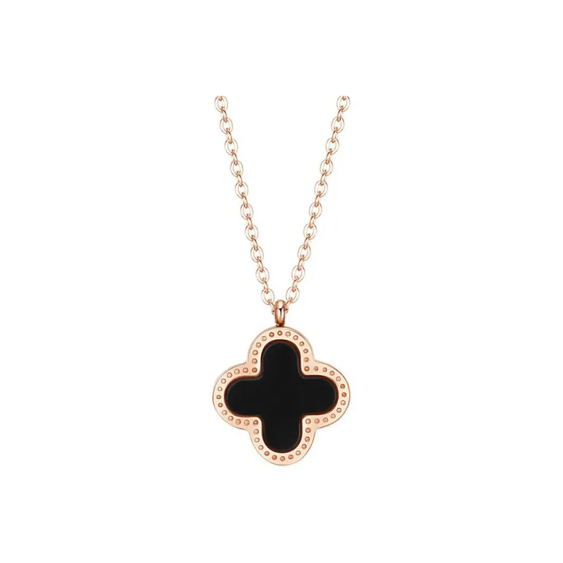 Стиль:Розово-золотой кулон в виде четырехлистного клевера, черный и белый, двусторонний