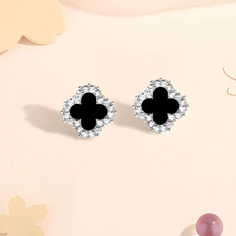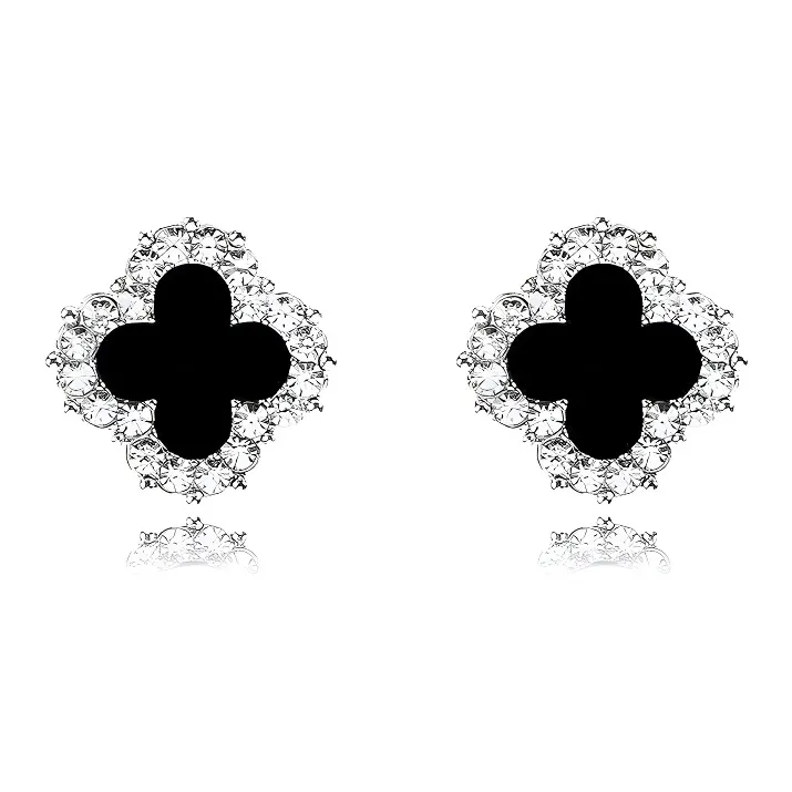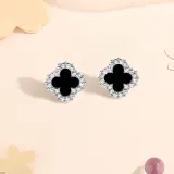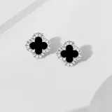 Стиль:Классический четырехлистный клевер, серьги-гвоздики, серебряного цвета