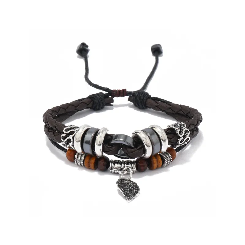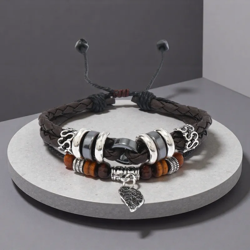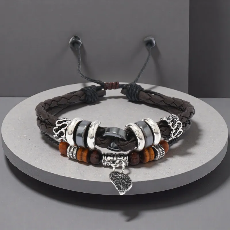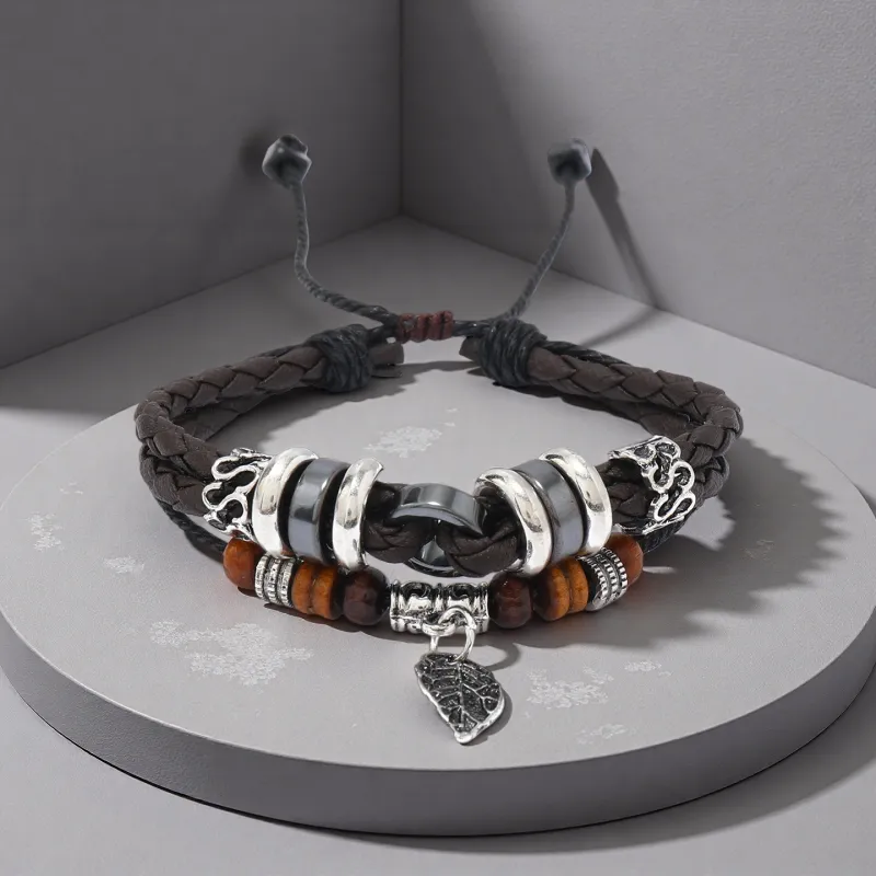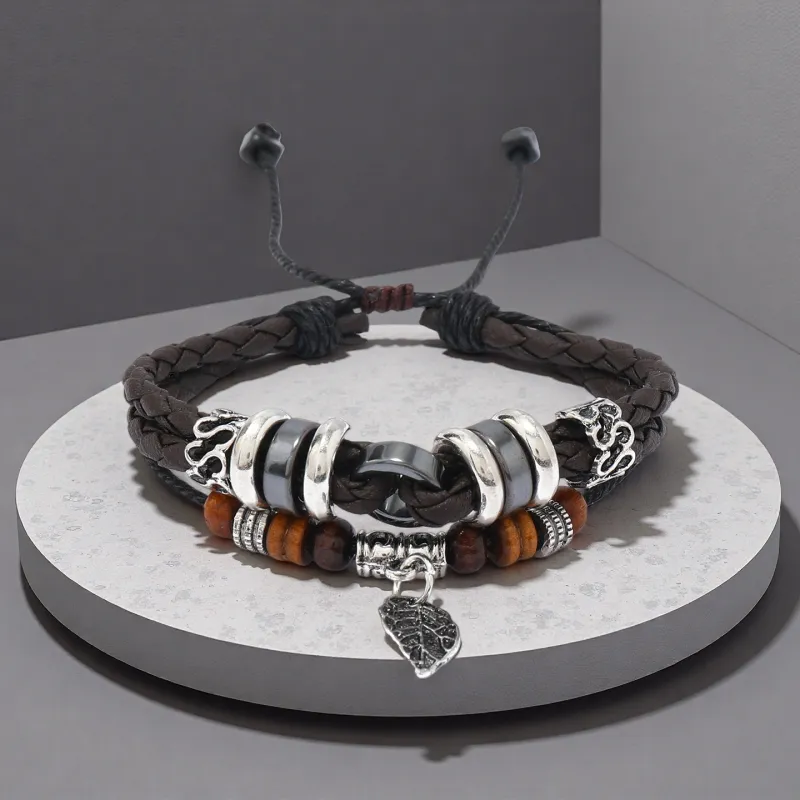 Стиль:Многослойный лист, подвеска, браслет-шнурок, коричневый