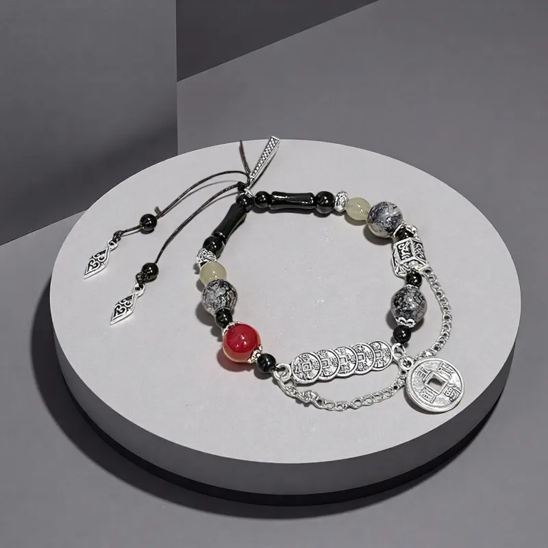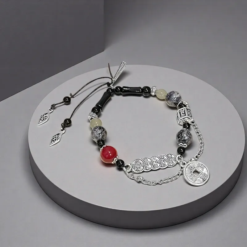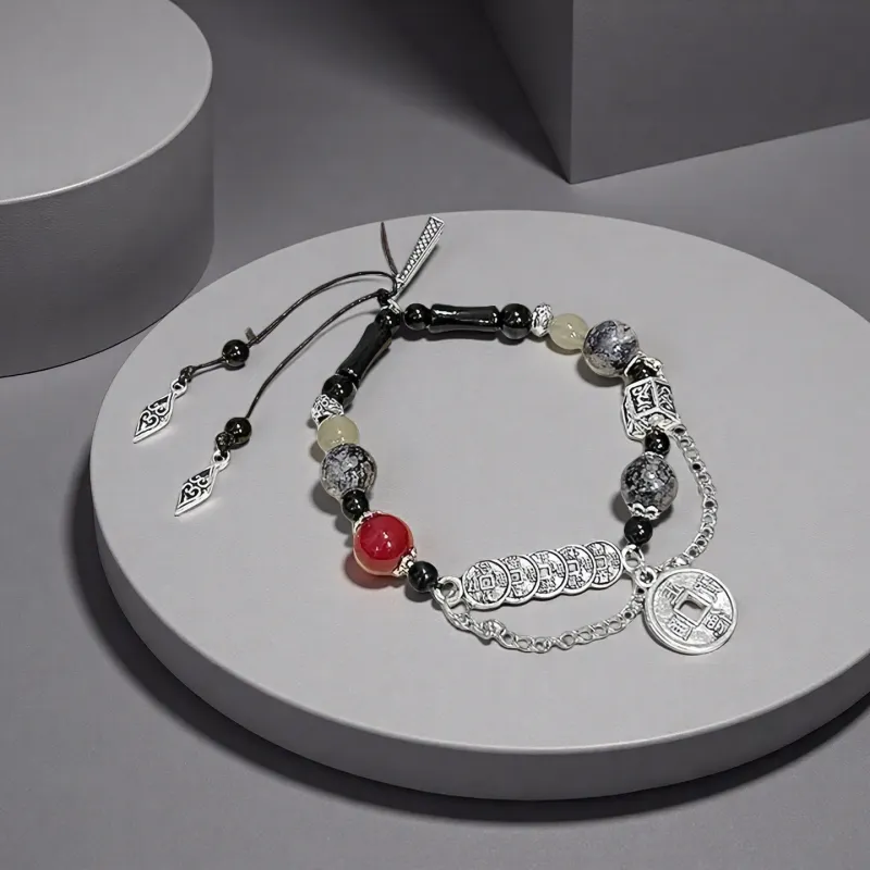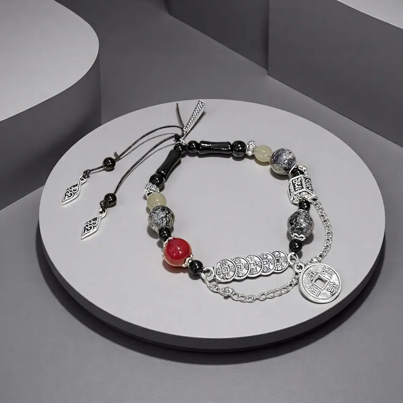 Стиль:Пятислойный медный браслет с красной монетой и банком