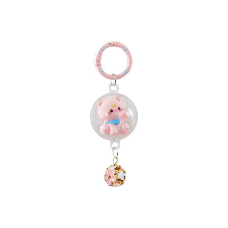 Розовый котенок, ветер, колокольчик, брелок