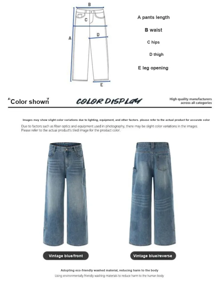 UOOHE Винтажные синие унисекс джинсы
